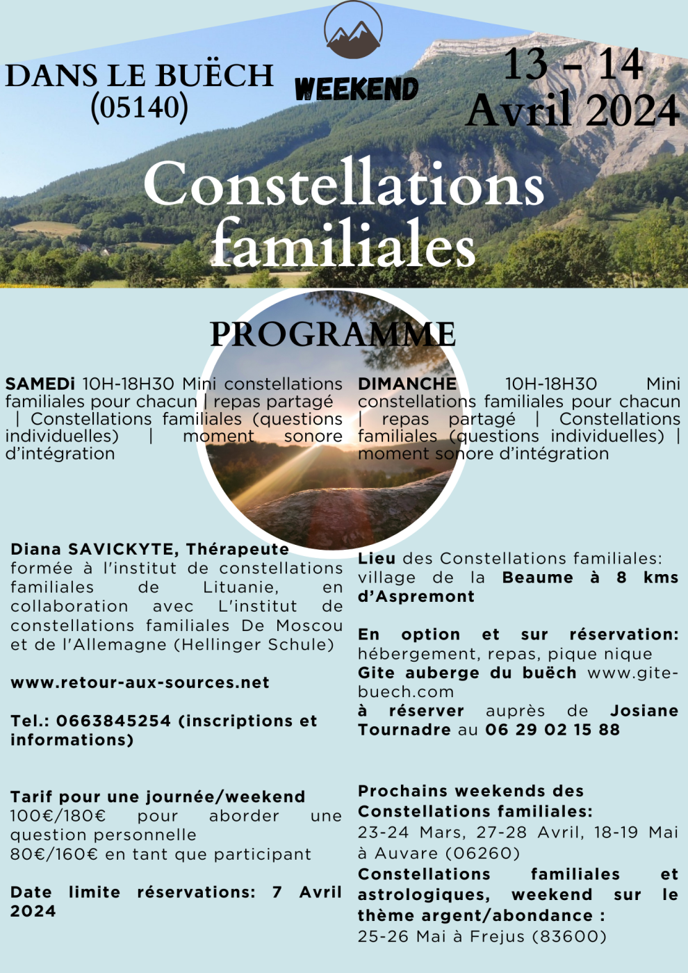 constellations familiales les 18-19 Mars 23 à Aspremont 05 avec des infos sur les Constellations Familiales
